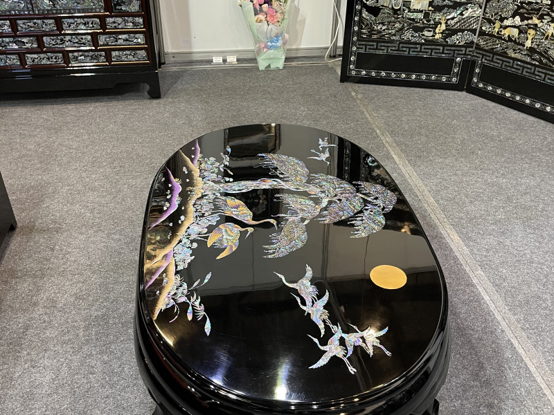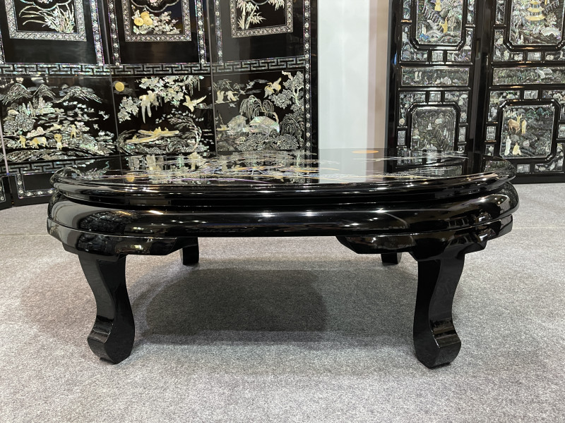 - 보랏빛과 노란빛이 은은하게 감도는 자개의 색감이 깊이 있는 아름다움을 더해주며, 부드러운 곡선미가 살아 있는 상판과 다리는 고풍스러운 멋을 자아냅니다.
